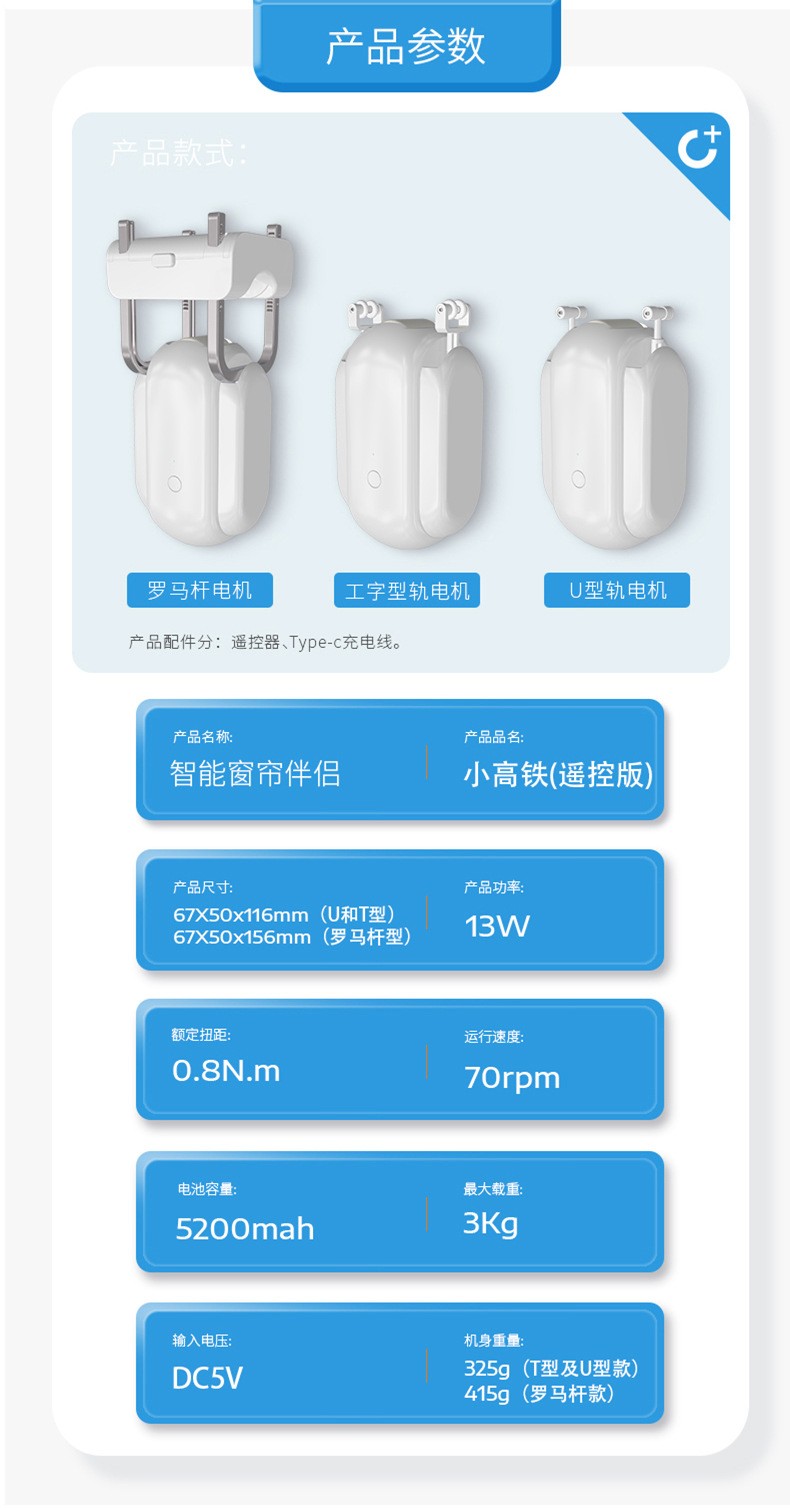 無線窗簾WIFI語音控制神器涂鴉智能電動窗簾伴侶羅馬桿窗簾助力器
